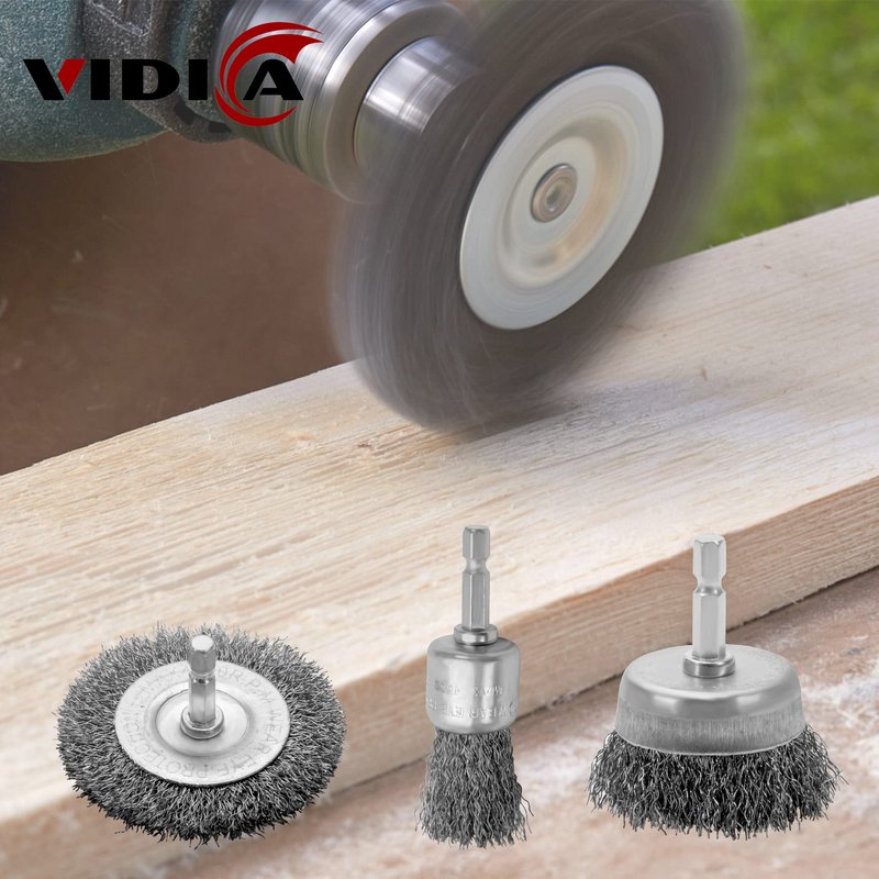 VIDICA Wire Brush for Drill Set 9Pcs,Abrasive Wire Wheel for 1/4 Inch Hex Shank, Wire Cup Brush for Drill, Coarse Crimped Carbon Steel Wire Brush Set for Removing Paint and Rust