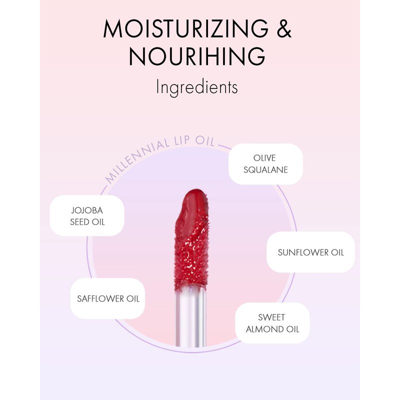 - ACHIEVE MOIST AND SHINY LIP MAKEUP: With Vidivici's Millennial Lip Oil, you can achieve beautifully shiny lips without any stickiness! Our lip oil creates a delicate dewy glow while adding volume to your lips. Say goodbye to sticky lip glosses and hello to a smoother, more radiant pout.