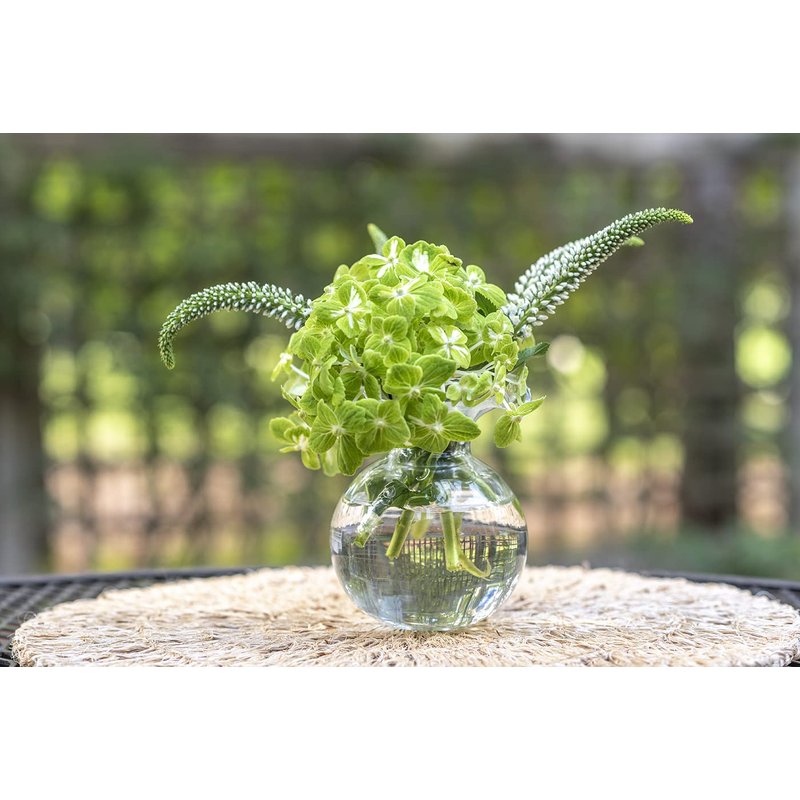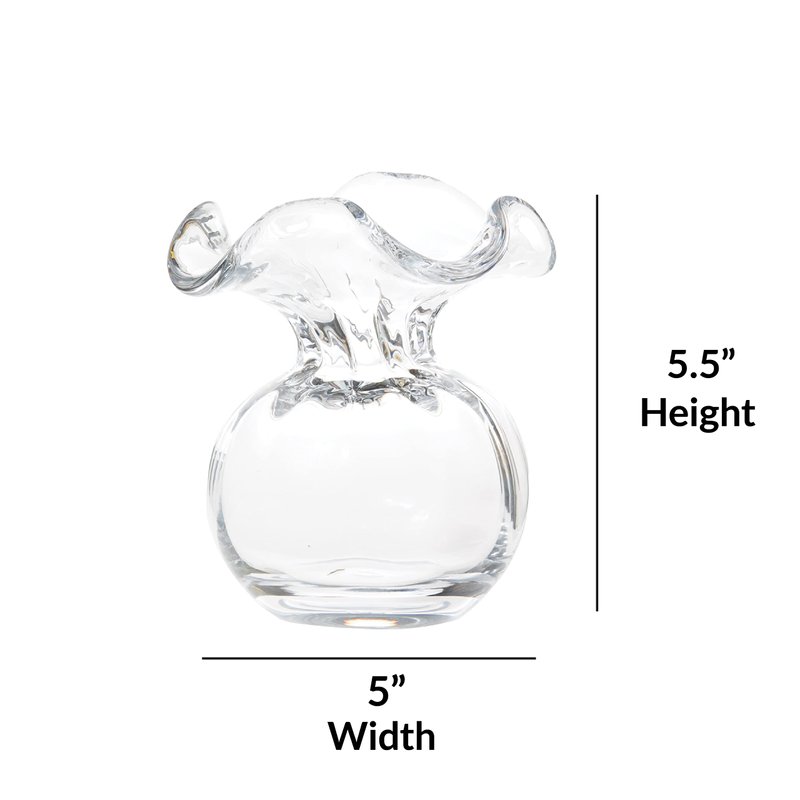 - SIMPLICITY SHINES THROUGH: Hibiscus Glass Clear Bud Vase, 5"D, 5.5"H - a minimalist glass vase for flowers, showcasing natural beauty. Perfect for single blooms or small arrangements.