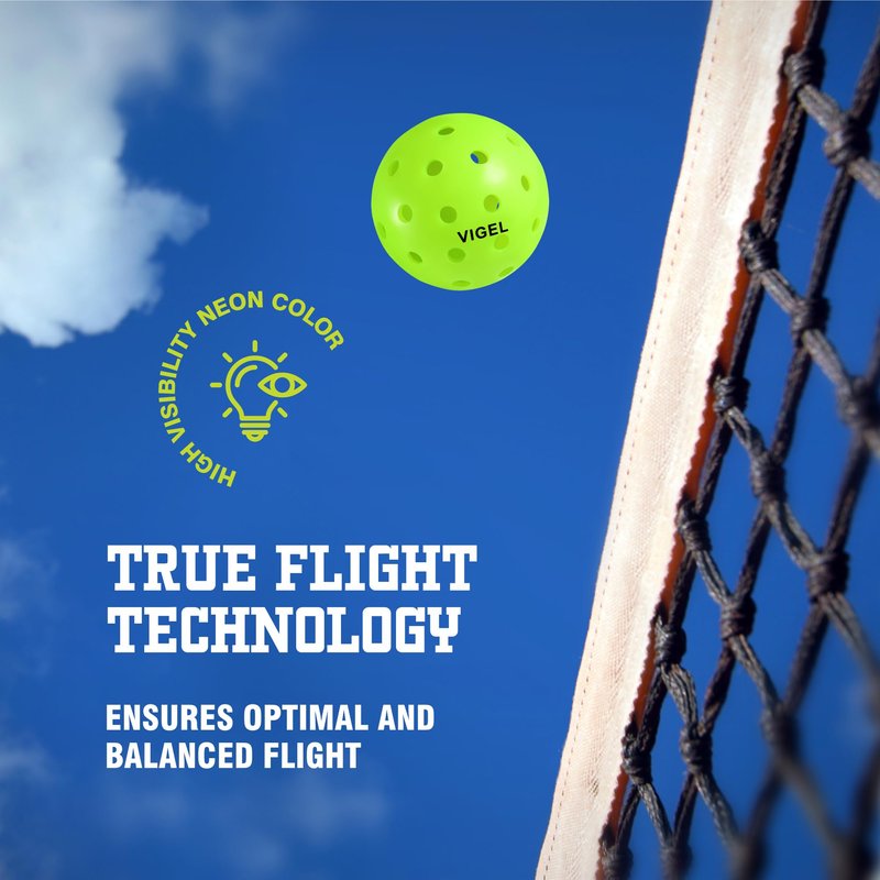 At Vigel, we are committed to providing our customers with top-notch products and exceptional service. Our primary goal is to ensure that you have the best possible experience with our products, backed by our unwavering dedication to quality and customer satisfaction. Introducing Our Premium Outdoor Pickleball Balls Elevate your game with our high-quality outdoor pickleball balls, designed to offer superior performance, durability, and consistency. These balls have been meticulously crafted to meet the highest standards and are perfect for players seeking to enhance their skills and enjoyment on the court. Some of the amazing key features of our pickle balls: 1.Unmatched Quality & Performance - Enjoy top-of-the-line outdoor pickleball balls, engineered for optimal gameplay and endurance. 2.Perfectly Balanced - Experience true flight and consistent bounce with strategically placed, precision-drilled holes for impeccable balance. 3.USAPA Approved - Confidently compete in sanctioned tournaments, knowing these balls meet all USAPA requirements. 4.Ideal Specifications - Featuring 40 rotational holes, a 26-gram (.92 oz.) weight, and a 74mm (2.9 in) size for high-performance play. 5.Durable & Long-lasting - Rely on the robust construction of these pickleball balls, designed to withstand countless outdoor matches and practice sessions. 6.Great for All Skill Levels - Whether you're a seasoned pro or a beginner, these balls cater to players of all skill levels, enhancing your overall experience. 7.True Flight & High Bounce - Benefit from a consistent bounce and accurate flight, ensuring seamless gameplay and increased enjoyment on the court. 8.Retains In Shape β Our ball is a rotational ball, itβs supper hard designed to retains in shape for game after game. Don't Settle for Less β Elevate Your Pickleball Experience Today! Why wait any longer? Invest in our premium outdoor pickleball balls and experience the difference in quality, performance, and durability.