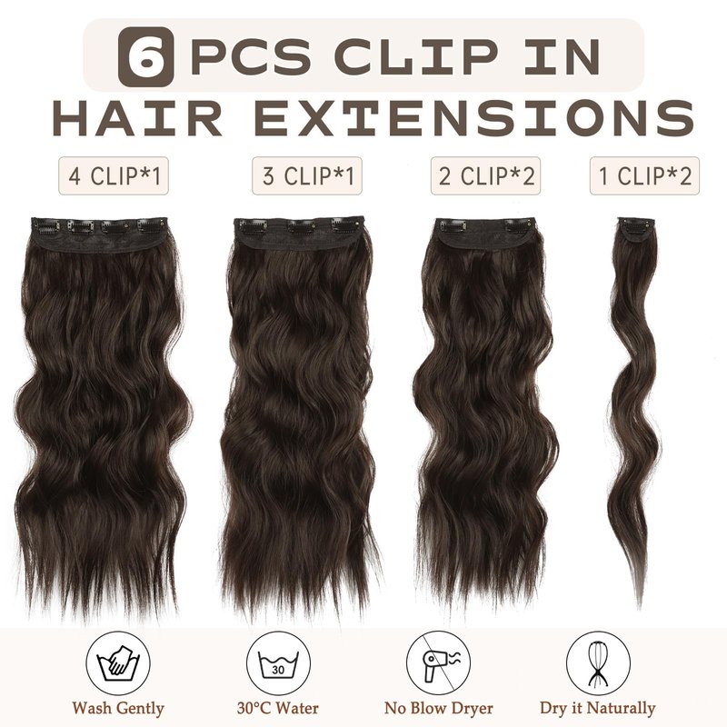 Vigorous Clip in Hair Extensions 20Inch Dark Brown Hair Extensions Clip Ins 6Pcs Long Wavy Soft Synthetic Hairpieces for Women(Dark Brown)