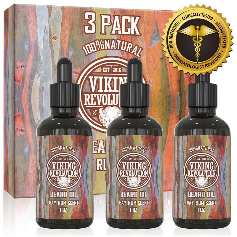 Viking Revolution Bay Rum Beard Oil for Men - Natural Mens Beard Oil with Argan Oil and Jojoba Oil - Beard Softener, Strengthens and Moisturizes - Beard Conditioner for Men (Bay Rum, 3 Pack)
