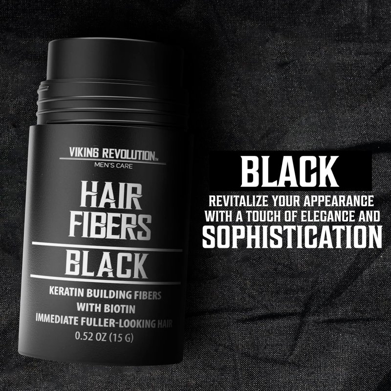 Viking Revolution Black Hair Fibers for Thinning Hair Men - Thick Fiber for Bald Spot Cover Up - Hair Building Fibers with Kerating and Biotin - Hair Fiber for Men for Thicker and Fuller Look (0.52oz)