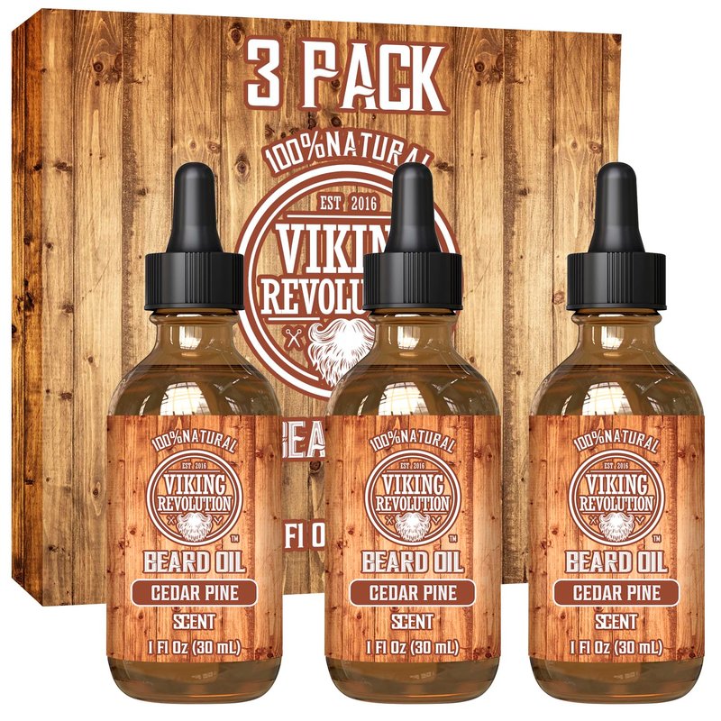 Viking Revolution Men's Beard Oil - Natural Argan and Jojoba Blend, Softens and Strengthens Facial Hair (Cedar and Pine, 3 Pack)
