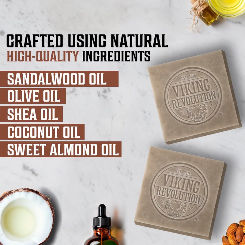 Viking Revolution Sandalwood Natural Soap for Men - Mens Soap Bar with Essential Oils Cold Pressed Bar Soap for Men - Nourishing Mens Bar Soap with Coconut Oil, Shea Oil, Almond Oil (2 Pack)