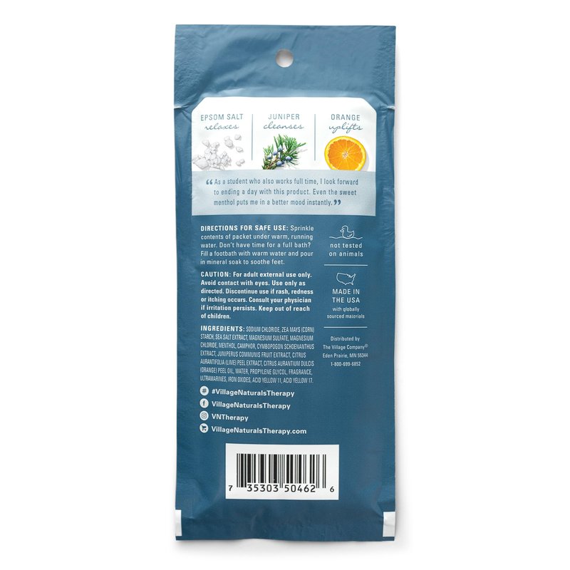 - ON-THE-GO RELIEF: Finding relief from muscle tension and stress can be a challenge – especially when you are constantly on the move. With our convenient, single-use Mineral Bath Soak packets, you can relax and de-stress while on-the-go. Take a dip in the tub with a powerful blend of essential oils and extracts including Juniper, Orange and cooling Menthol.