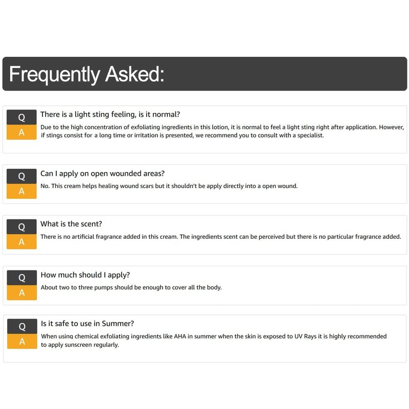 - REJUVENATING: Body lotion for effective peeling with AHA 12 %, maintaining pH balance. Even with a 12 % Glycolic Acid Solution, pH 3.0~4.0 balance prescription removes dead skin cells without irritating the skin