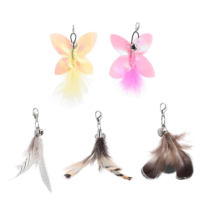VILLCASE 5pcs Cat Feather Toys Replacement, Cat Wand Toy Refills Natural Feathers Replacement Teasers, Cat Wand Feather Refills Interactive Cat Toys with Bell Refills