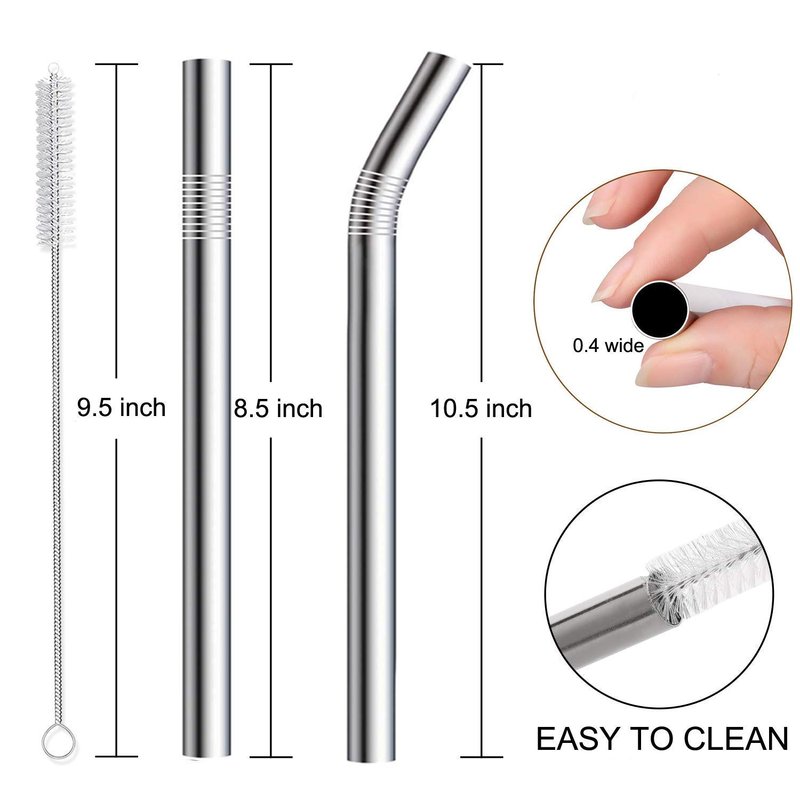 - 1, [SUPERIOR DESIGN, EXTRA WIDE & LONG]: 2pcs 10.5'' bent |2 pcs 8.5'' straight |1pack cleaning brush, These metal wide straws are great for Christmas day, birthday party, family gathering, barbecue, suitable for people who is with sensitive teeth or wants to keep teeth white.