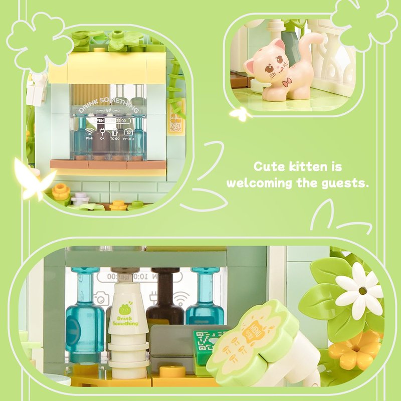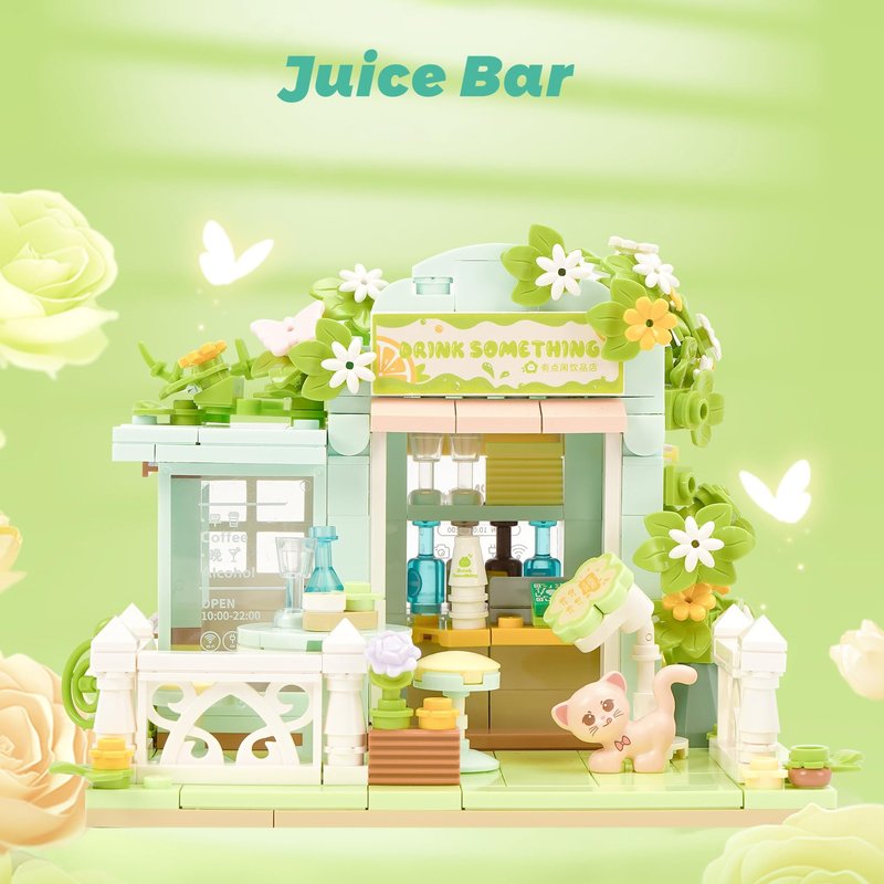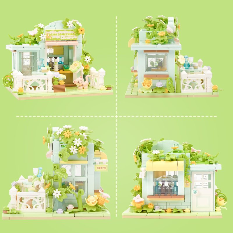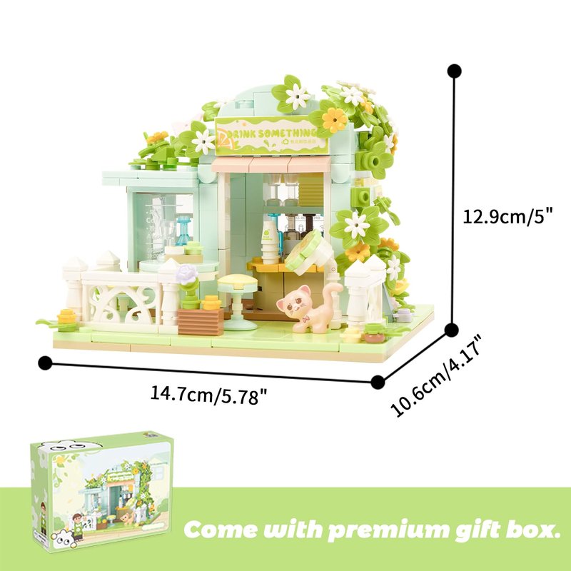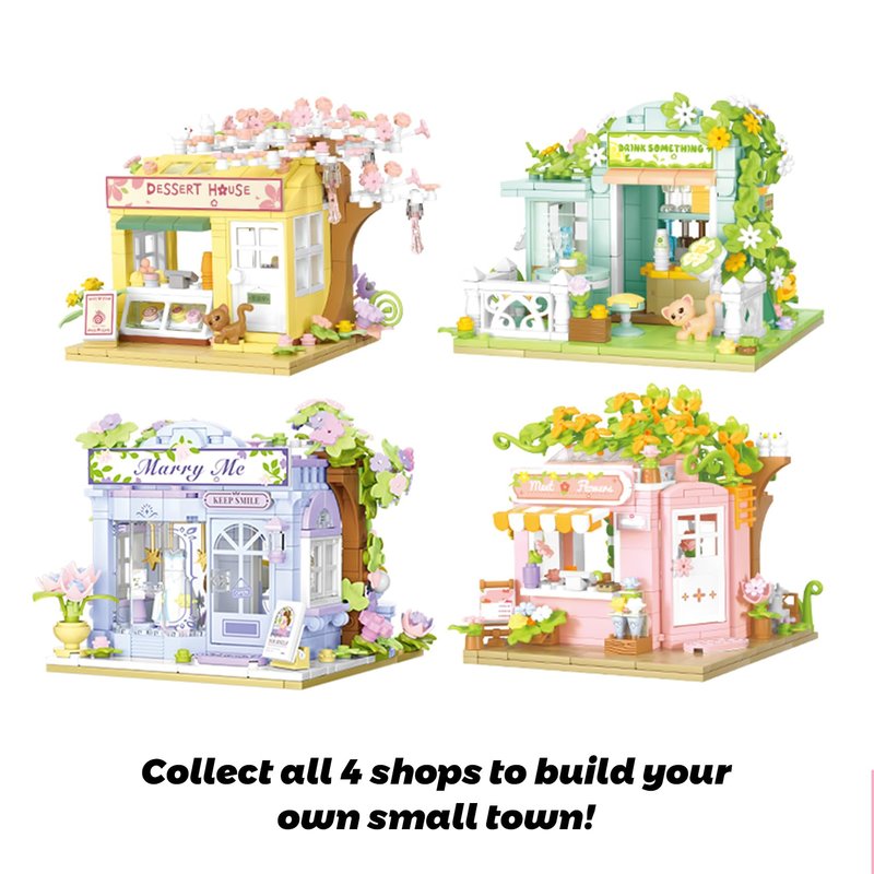 - Design based on real shop: Including wedding dress shop,beverages shop,dessert shop and flower shop.This shop building set can be opened and closed for added playability. You can find more fun in building experience and build your own street.