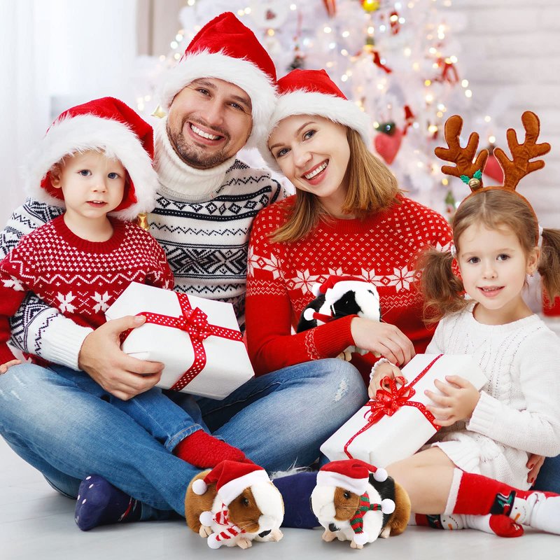 - Package Contains: there are 3 pieces of guinea pig stuffed animals in different colors, coming with 3 pieces of Santa hats and 3 pieces of Santa scarfs, sufficient quantity can nicely satisfy your playing or decorating needs