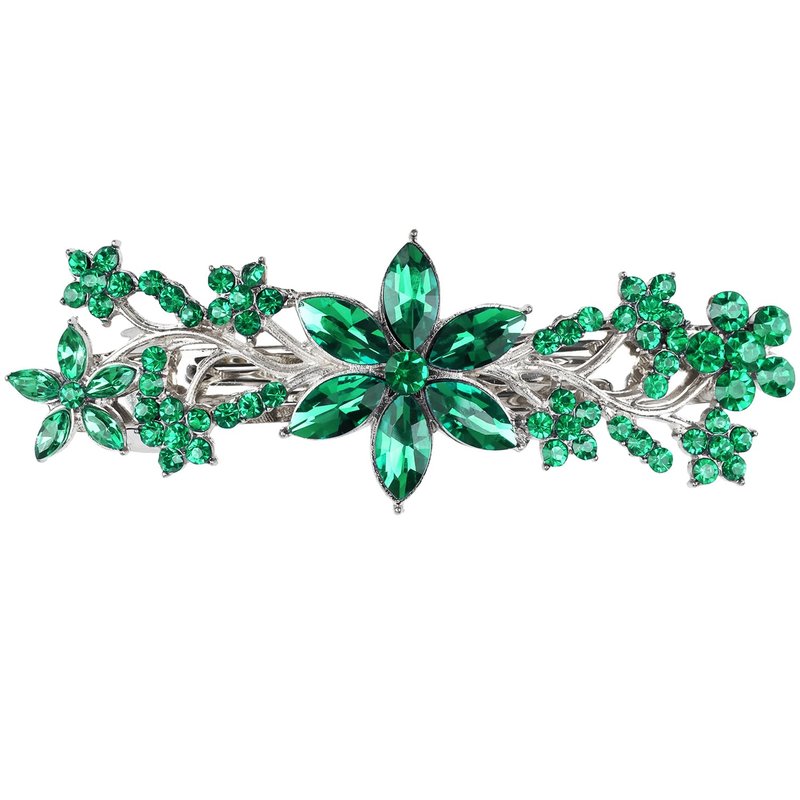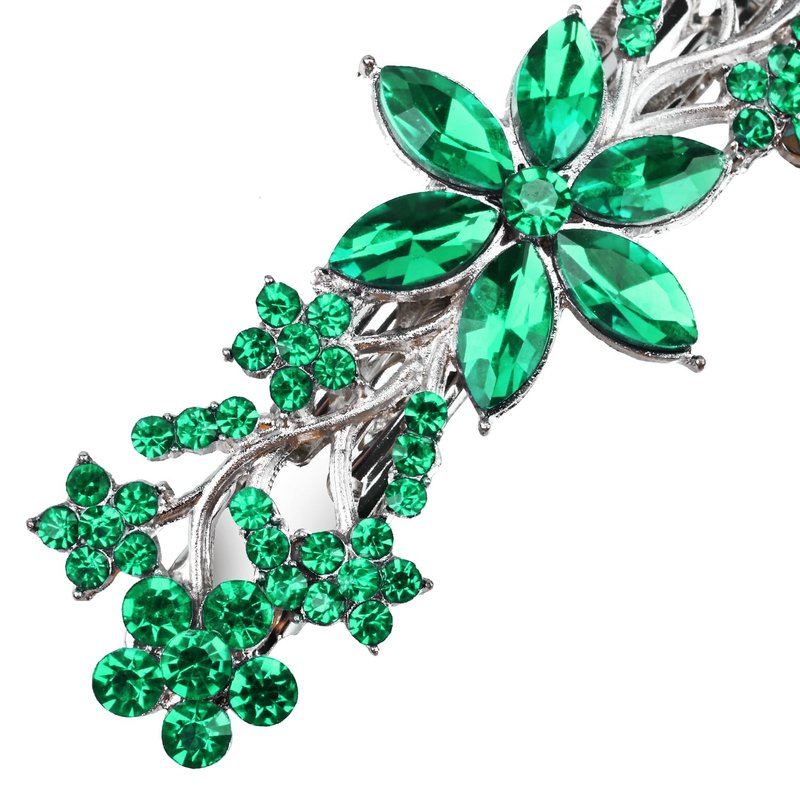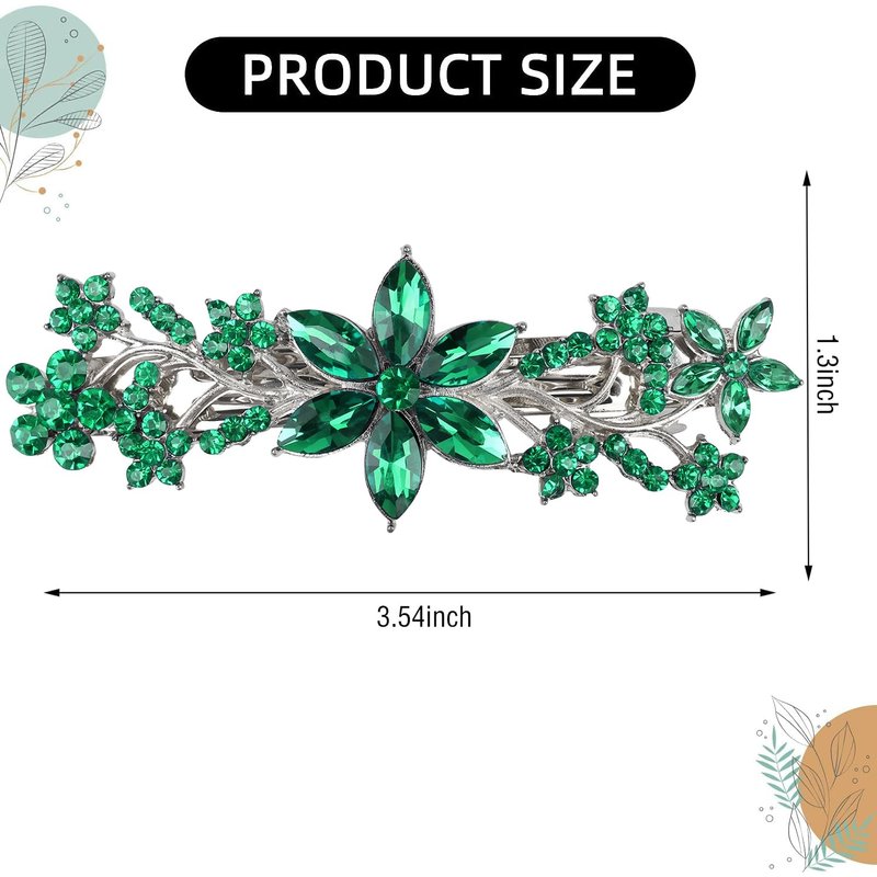Vintage Crystal Hair Barrettes,Sparkly Glitter Crystal Rhinestones Flower Hair Clips French Style Hairpin Hair Accessories for Women Girls (Green)