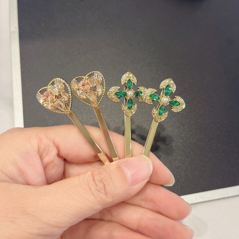 - Vintage Style: These hair pins feature a retro, vintage-inspired design with green flower clips and pink crystal rhinestones for a timeless, elegant look.