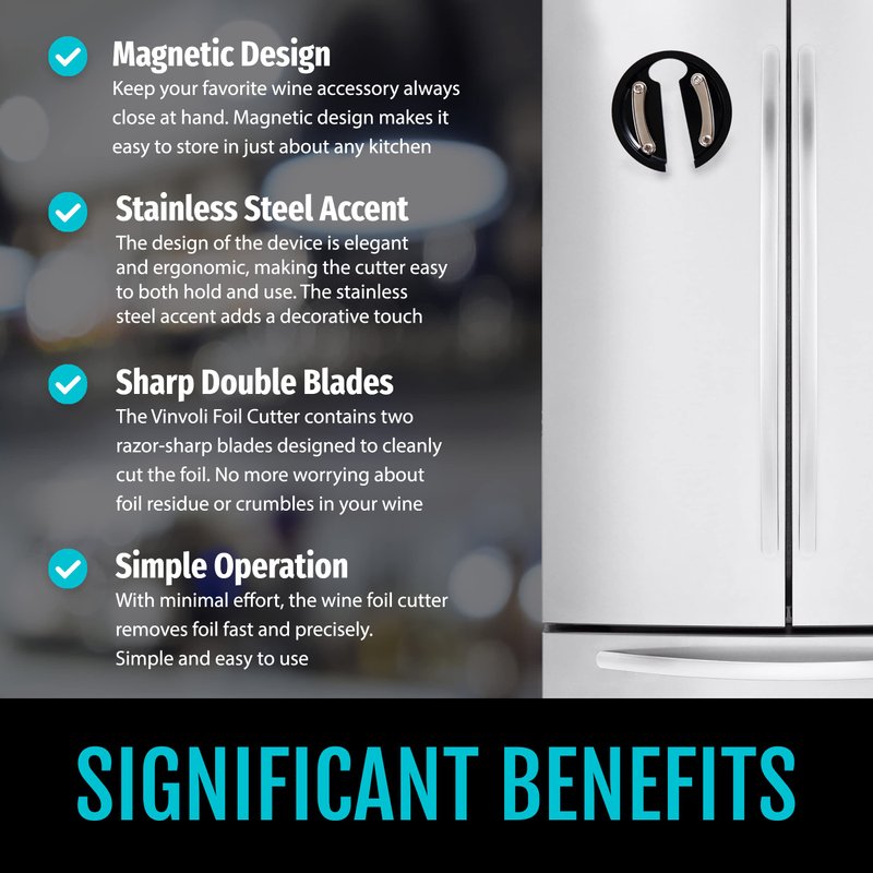 - [Best Wine Foil Cutter Ever] Get our luxury stainless steel Vinvoli wine foil cutter tool and forget any issues with wine foil removal. Our wine foil cutter is simple, elegant, and practical to use.