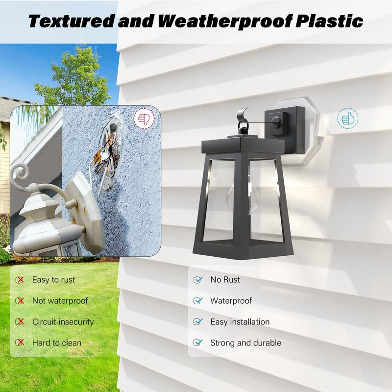 - 【Package Included】There are a Mounting Block with Built-in Electrical Box on the package. You could install an exterior light pn Vinyl Siding with a mounting plate as you want. 【Note】: If the size of the Mounting Block does not match your siding surface, caulk around the top of the siding mounting kit.