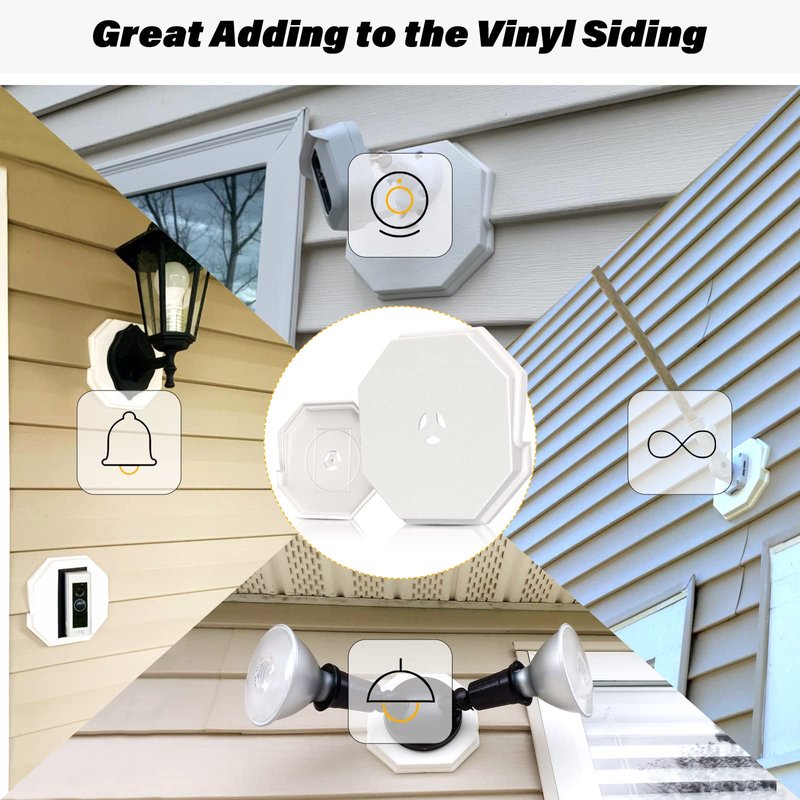 - 【Widely Applications】The siding mounting kit can mount all exterior accessories like light fixtures, cameras, doorbell on all siding types, including T-111, HardiePlank Lap Siding, and other flat surfaces. It makes adding new lighting to existing siding more easy with the built in electrical box.