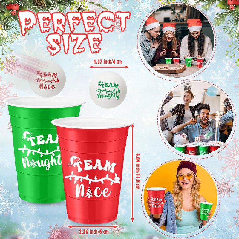 - Christmas Theme Decoration: the 22 holiday plastic cups feature festive prints like Team nice, Team naughty; The eye catching designs can enhance the holiday atmosphere, making any event more interesting and fun filled