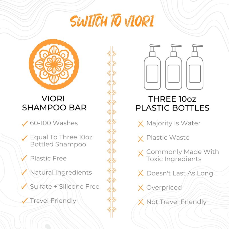 Viori Citrus Zest Essential Oil Shampoo Bar Made with Rice Water - Handcrafted All Natural Shampoo Bars - Sulfate Free Shampoo