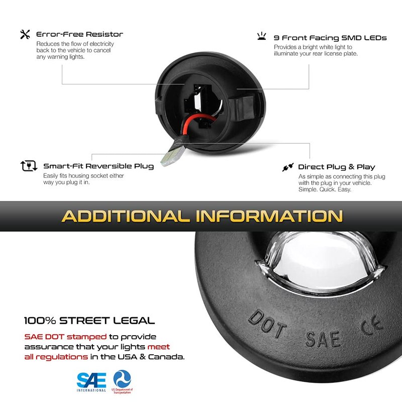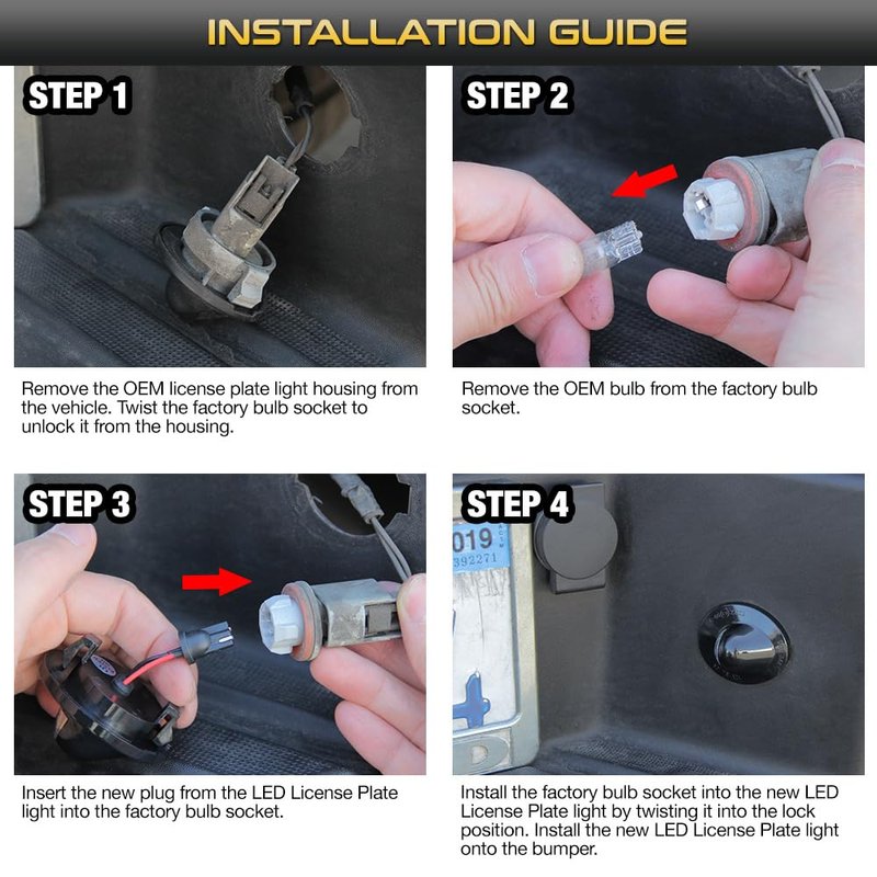 - [Fully Plug & Play Ready] - Simply Remove Original Housing with T10 Bulbs & Connect The Plug to the Socket. Twist to Lock the Housing and Push Back on the Rear Bumper. Done.