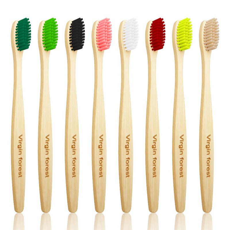 Virgin Forest Bamboo Toothbrush, Biodegradable Toothbrush, Eco Friendly Natural Wooden Toothbrushes, Vegan Organic Bamboo Charcoal Tooth Brush for Sensitive Gums Medium Bristle Set of 8 Color