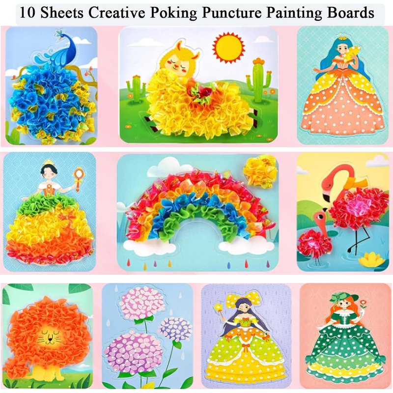 - 【Creative Painting Kit】Poke out colorful and textured paintings with paper and fabric, play out design thinking, enhance flexibility and hand-eye coordination, and stimulate children's creative potential.