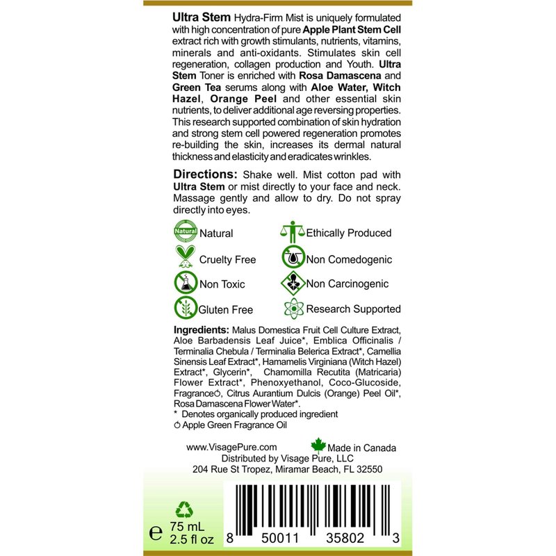 - SKIN REGENERATING AND TONING - Utra Stem Hydra-Firm Toner Mist is a powerful hydrating and regenerating anti-aging toner. Ultra Stem toner mist specializes in toning and tightening the skin and minimizing its pores while also hydrating the skin.