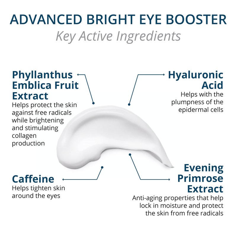 - Revitalize Your Eyes with Advanced Bright Eye Booster: Uncover the secret to radiant eyes with our 4-in-1 eye cream designed by Purvisha Patel, MD. The Advanced Bright Eye Booster utilizes plant-based peptide technology, Emblica Extract, Hyaluronic Acid, and Caffeine to stimulate micro-circulation, reduce puffiness, and visibly minimize dark circles, leaving your eyes looking youthful and revitalized.