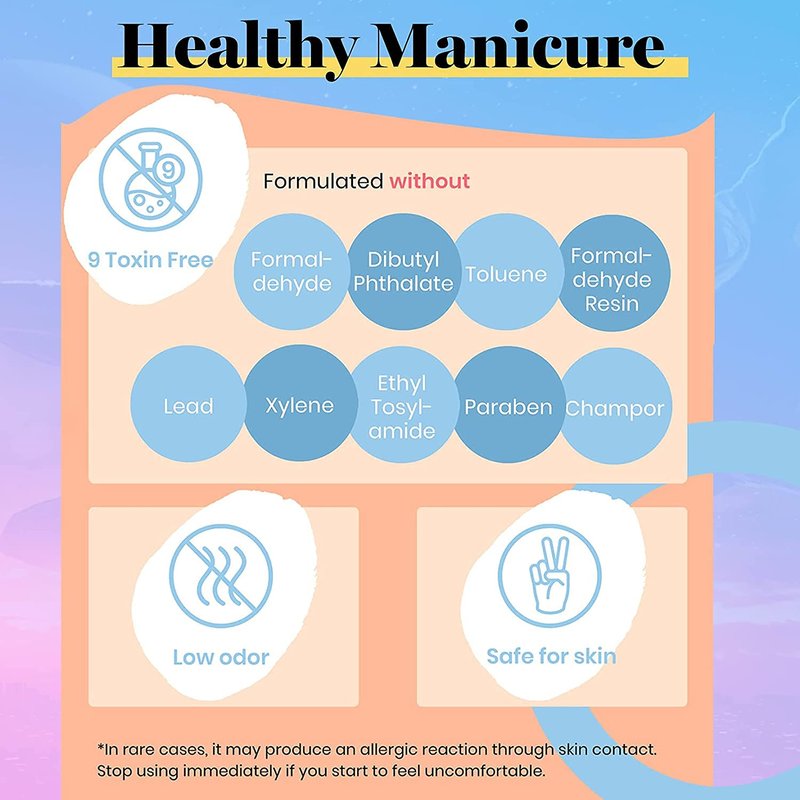 - HEALTHY AND ECO-FRIENDLY - Healthy and environmental friendly ingredient are used to produce great gel polish. Non toxic and harmless resin, no poisonous materials used that offer you a reassuring nail art experience
