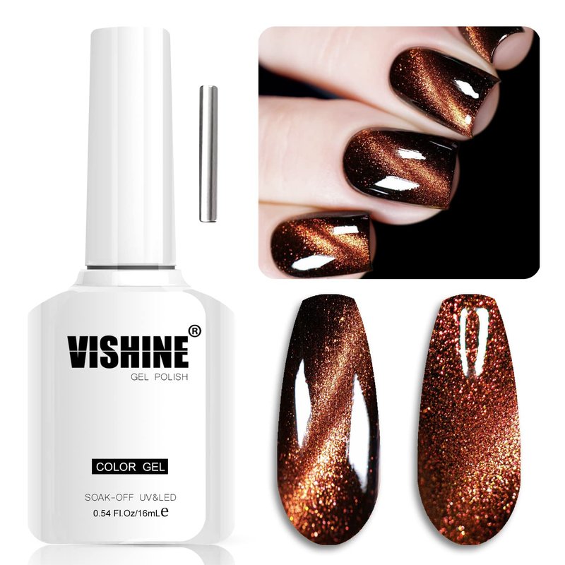 Vishine 9D Cat Eye Brown Gel Nail Polish with Magnet Galaxy Cateye Chameleon Nail Gel Polish Manicure Soak Off UV Gel DIY Salon Home 16ml