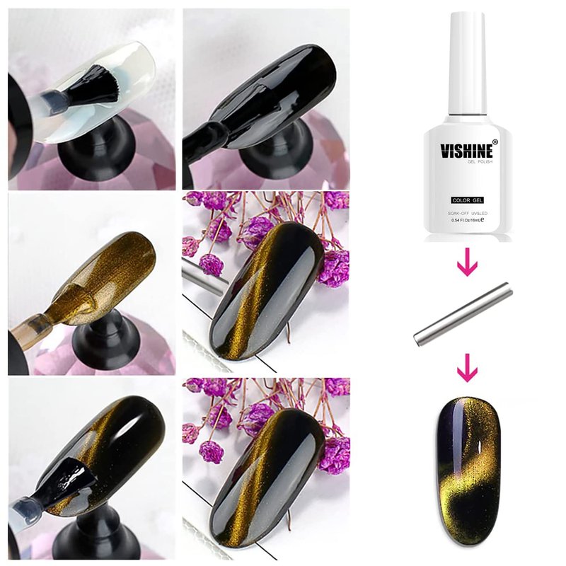 - This item include: 1PCS of 16ml Cat Eye Gel Polish, 1PC Magnet. High Pigmented & Awesome Coverage! All of our picture show applying the Black Gel as Base.