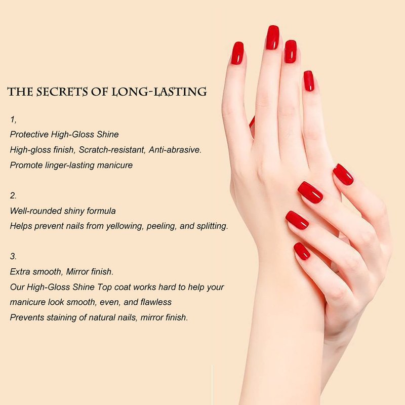 - High-gloss finish, Scratch-resistant, Anti-abrasive.Promote linger-lasting manicure