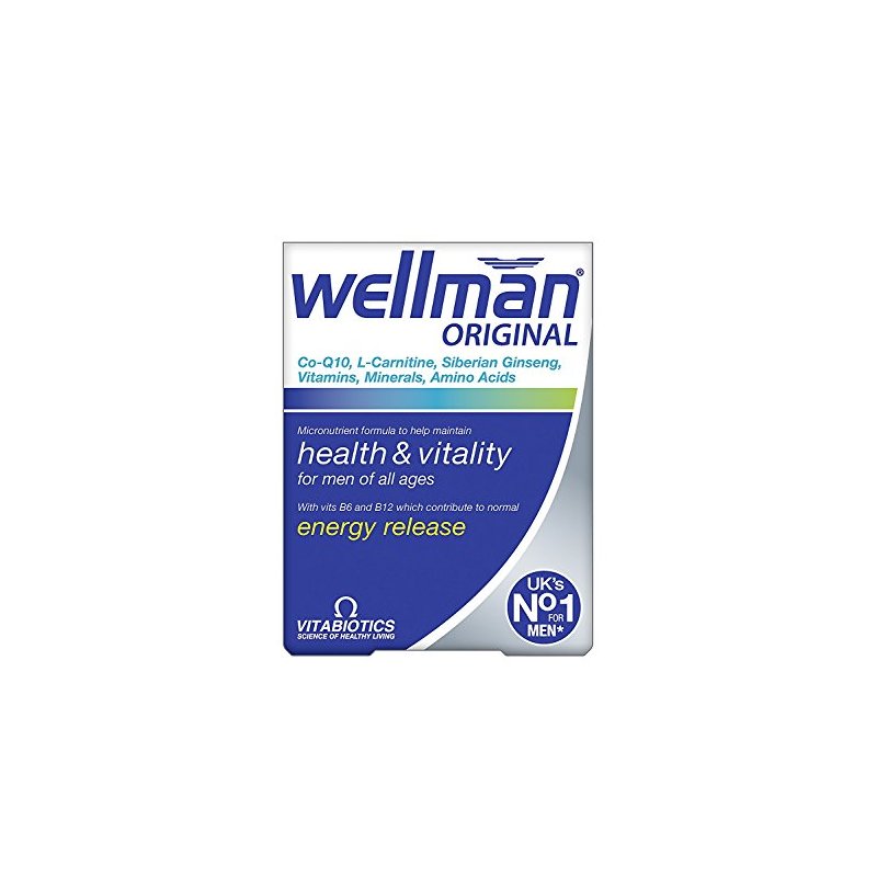 DESCRIPTIONWellman contains a comprehensive formulation of over 29 essential bio-elements. It has been specially developed for men who want to maintain optimum nutrition levels while training, who want to help support reproductive health, or help maintain general health and vitality in an otherwise hectic lifestyle. Wellman represents a simple solution, an advanced one-a-day tablet, which unlike a general multivitamin, has been specifically formulated for men.It is different from a regular multivitamin as its formula has been optimised for men's health on the basis of international research evidence. Some nutrients are provided at levels above the Recommended Daily Allowance while Wellman provides a core source of all the major vitamins and minerals, it also provides more than 100% of certain nutrients, plus Siberian ginseng, Co-enzyme Q10 and amino acids.Free radicals are generated during exercise through perspiration and exposure to sunlight. Antioxidants vitamin B2, C and E with minerals copper, selenium and zinc contribute to the protection of cells from oxidative stress. Vitamin C contributes to maintain the normal function of the immune system during and after intense exercise.A healthy immune system is important for good health. Wellman includes vitamins A, C, D, B6 and B12 with folic acid and copper which contribute to the normal function of the immune system plus bioflavonoids.Wellman provides zinc which contributes to the maintenance of normal testosterone levels in the blood. The formula also includes selenium which contributes to normal spermatogenesis. Since men lose an estimated 5 mg of zinc every time they ejaculate, a good intake of zinc is essential. Folate, iron, magnesium and vitamin B12 have a role in cell division, plus vitamin A which has a role in the process of cell specialisation.