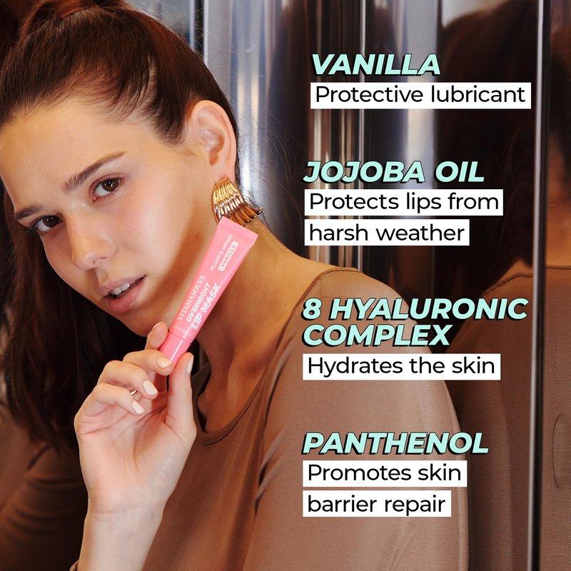 - Skin-Loving Ingredients: This luxurious overnight lip treatment is made with Vanilla, Shea Butter, Jojoba Oil, 8 Hyaluronic Complex, Multi-Peptides, Panthenol and Vitamin C & E to plump and repair your lips while you sleep.
