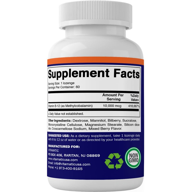 Vitamatic Methyl B12 (Methylcobalamin) 10,000 mcg 60 Lozenges - Superior Source of Vitamin B12