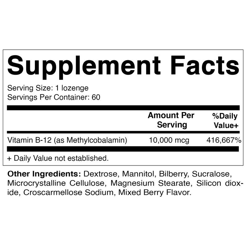 - B12 Vitamin 10,000 mcg per Lozenge - 60 Lozenges per Bottle