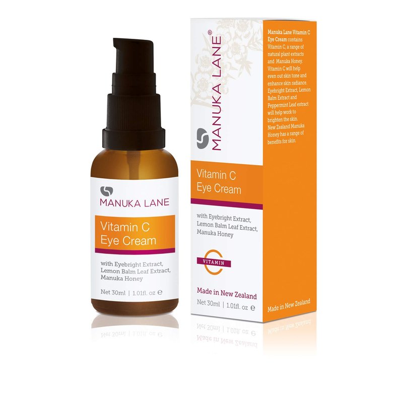 - REAL, NATURAL RESULTS WITH THE POWER OF VITAMIN C. In the super-concentrated formula, naturally occurring Vitamin C replenishes your skin, leaving it bright, smooth, and lifted. Pure New Zealand Manuka Honey, Vitamin C, and Eye Bright Extract, Lemon Balm Extract provide deep hydration and prevent further damage from the sun and environment.