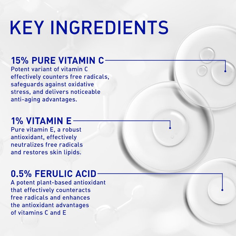 - Triple-Power Antioxidant Blend for Facial Routine: Harness the combined benefits of Vitamin C, Vitamin E, and Ferulic Acid to create a potent shield against environmental stressors, promoting brighter, firmer, and more youthful-looking skin.