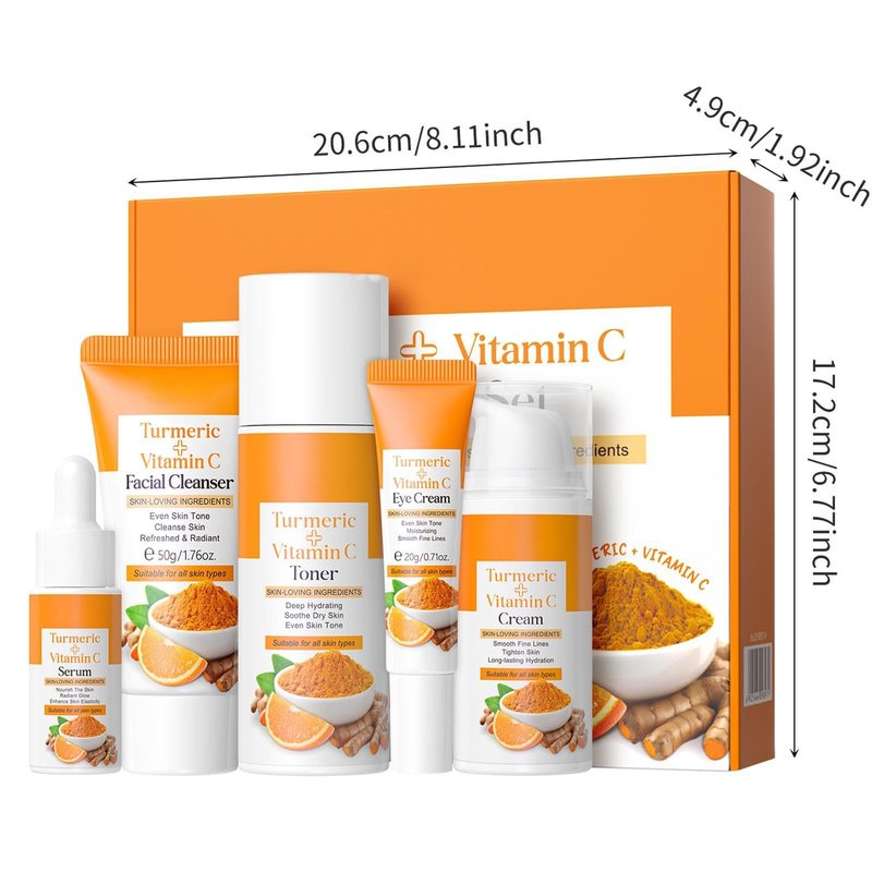 - 【ALL ABOUT TURMERIC SKINCARE SET】- Complete Turmeric vitamin c skin care set includes the Turmeric Facial Cleanser, Turmeric Serum, Cream, Toner, Eye Cream. This skin care kit for Daily Care, Dehydration & Dryness, Fine Lines & Wrinkles. Rich turmeric and vitamin C help instantly improve your skin