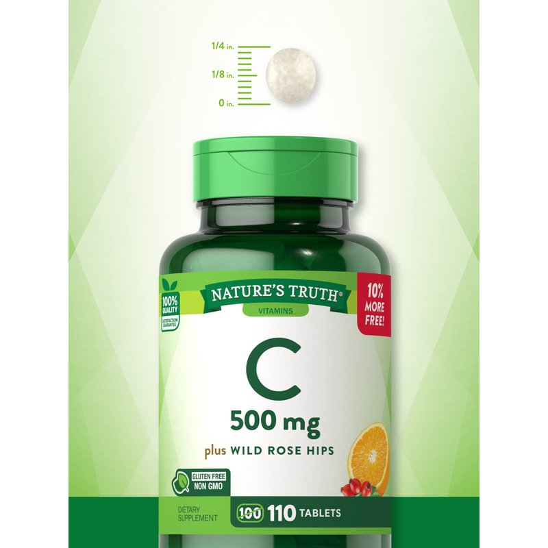 Vitamin C with Rose Hips 500 mg | 110 Tablets Vegetarian, Non-GMO, Gluten Free | by Nature's Truth