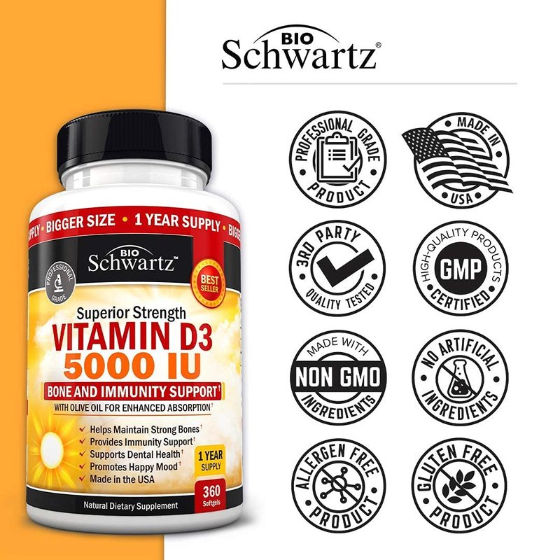 - Immune support: BioSchwartz superior strength vitamin D3 5000 IU helps balance a healthy immune system, allowing it to function at optimal levels to help protect you all year round
