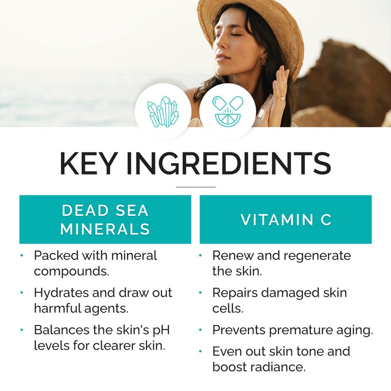 - DEAD SEA MINERALS - Packed with mineral compounds that hydrate and draw out harmful agents, the rejuvenating serum balances the skin's pH levels for clearer skin.