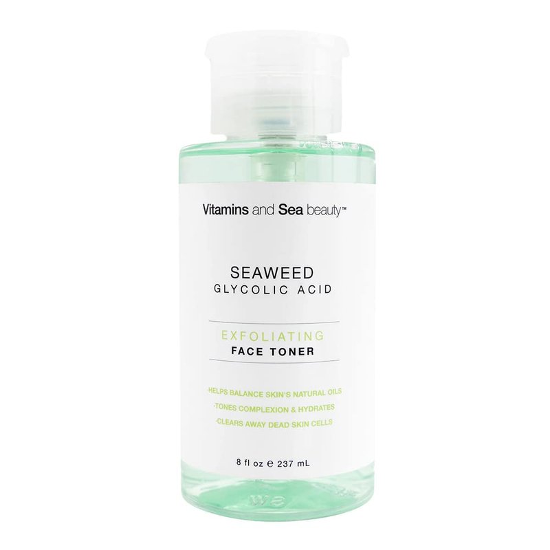 Vitamins and Sea Beauty, Exfoliating Face Toner with Glycolic Acid and Seaweed, Oil Control Facial PH Balancing Dead Skin Pore Minimizer, All Skin Types, 8 Fl Oz
