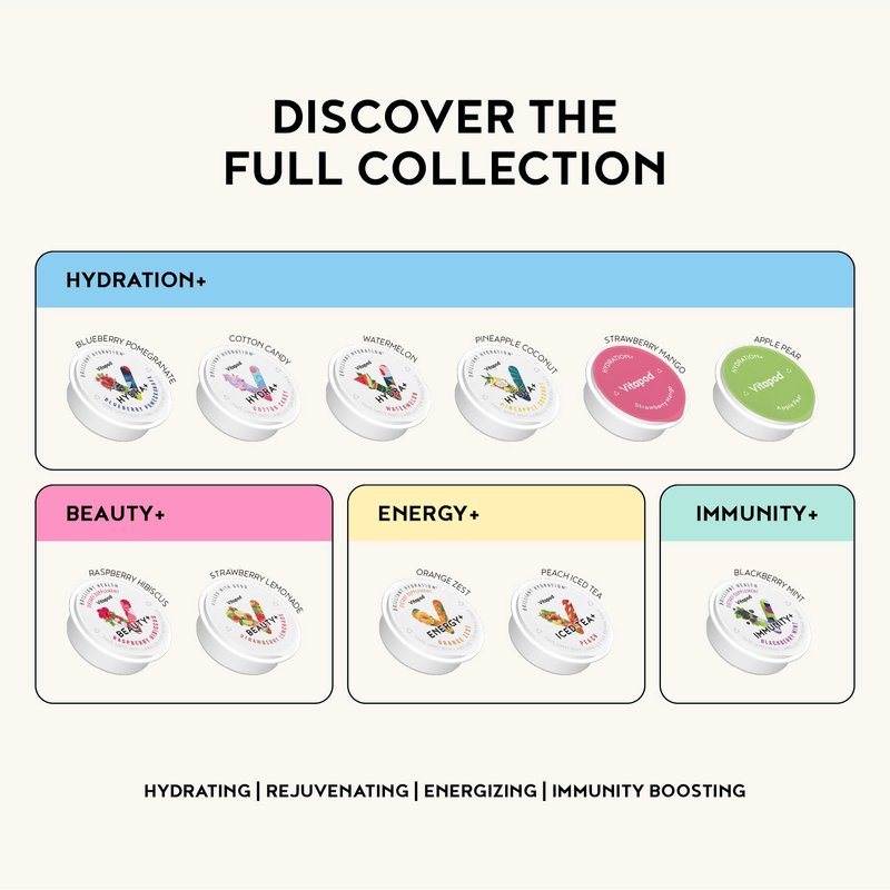 - ZERO SUGAR HYDRATION DRINK: Enjoy guilt-free hydration and energy with Vitapod water flavoring. Our Energy+ flavor cartridges are made with low sodium. zero sugar, no artificial flavors or sweeteners and are gluten free, dairy free, soy free, vegan and non GMO.