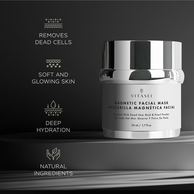 Reveal the radiance within you as you indulge in Vitasei's premium Magnetic Mask. This unique natural face mask is a mineral-infused clarifying formula, carefully designed to give your skin a professional and rejuvenating Spa-like cleanse. From deep within your skin's layers, activated charcoal and Dead Sea Mud extract impurities and excess oil, leaving you looking refreshed and revitalized.