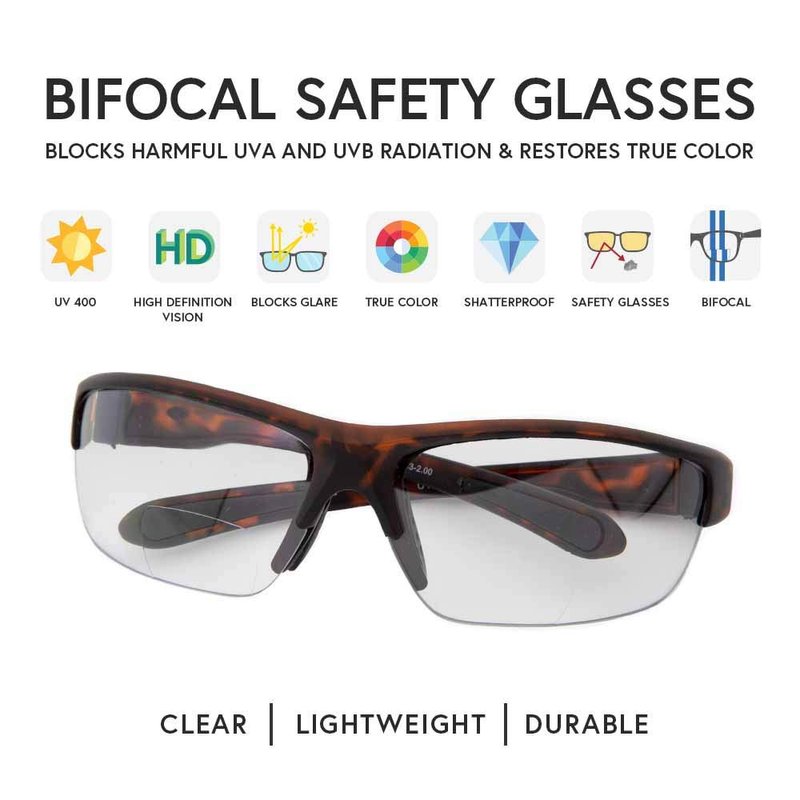 The Rome Safety Bifocal glasses for men and women Wrap Around Sports Protective Goggles are constructed for comfort and durability with designs inspired by modern Italian eye-wear. Featuring a lightweight yet strong, these comfortable yet premium glasses for men and women will hold up to the rigors of frequent use.