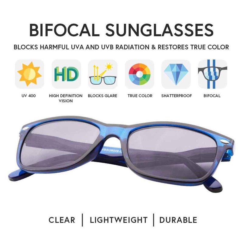 - Nearly Invisible Bifocal Lenses - Regular Sun Glasses on Top with Almost Invisible 1.50 Power at the Bottom Perfect for Outdoor Reading and Distance Viewing.