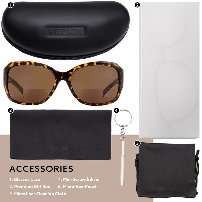 VITENZI Bifocal Sunglasses for Women, Jackie O Reading Tinted Readers, Vittoria in Tortoise 2.25
