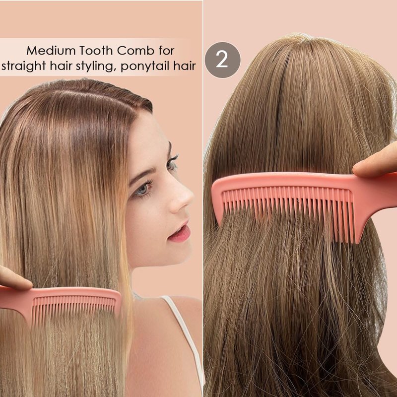- QUALITY MATERIAL, the comb set is made of high quality plastic, lightweight, sturdy and heat-resistant, not easy to break. Rounded comb teeth, care for scalp, perfect tooth spacing design, will not pull hair easily.