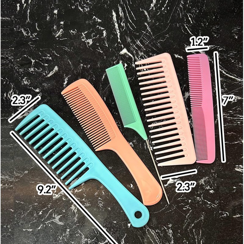 - 5 Pieces Comb Set: Containing wide tooth comb (2PC), fine tooth comb (2PC) and pointed tail comb (1PC). Various styles to meet the needs of women and men with different thick to thin hair.