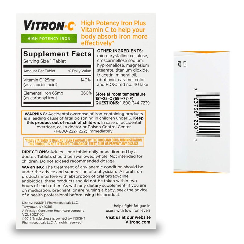 Vitron-C High Potency Iron Supplement with 125 mg Vitamin C, 60 Count